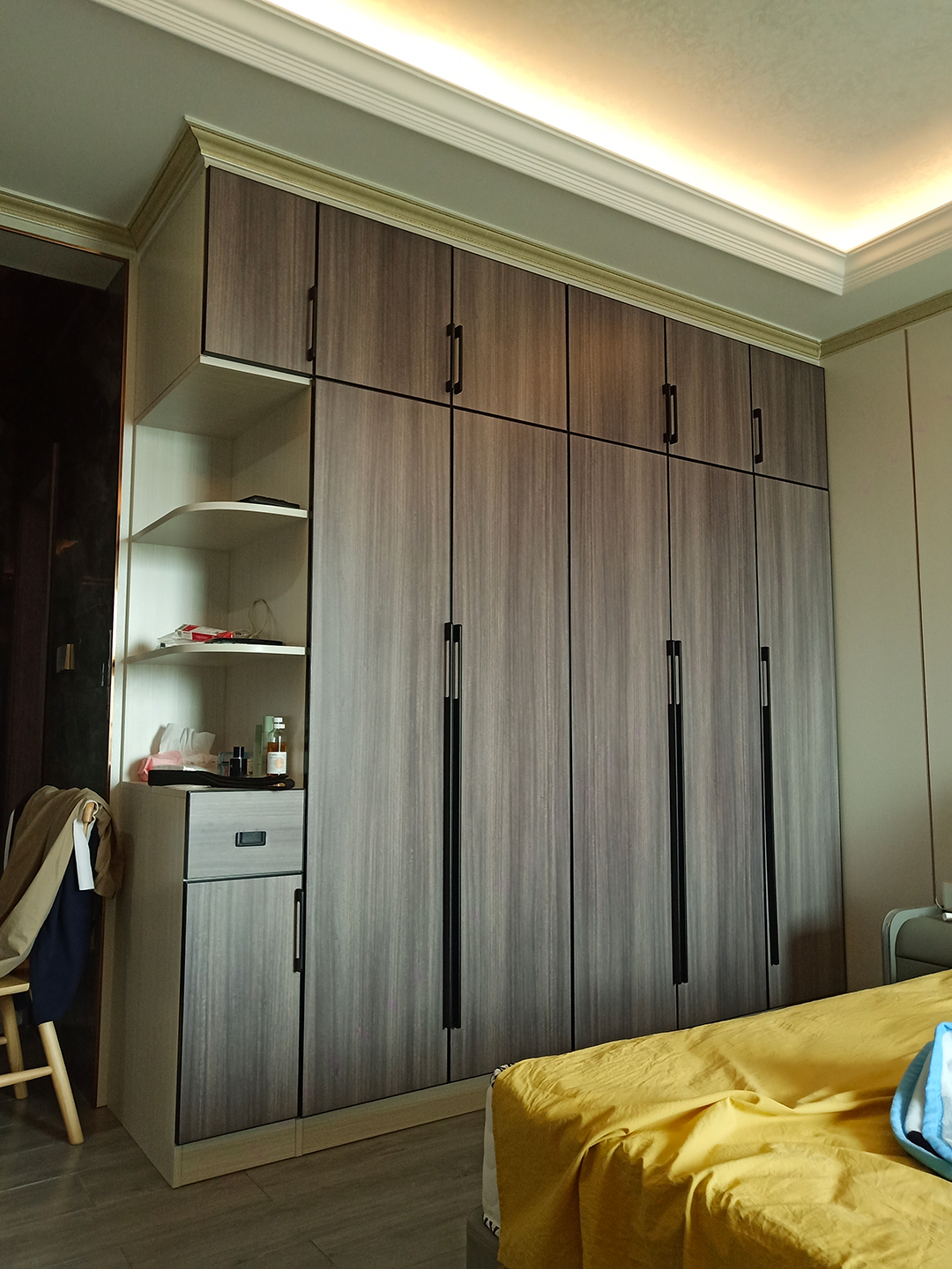 一般來說,全鋁衣柜和床之間的距離,最好保持在60~90厘米左右,并根據(jù)自家生活習(xí)慣來設(shè)計動線。