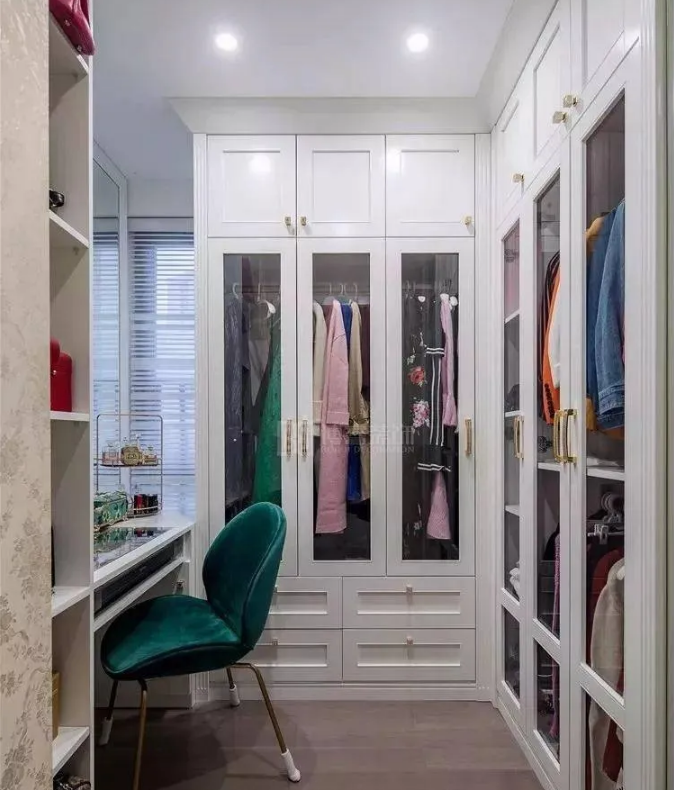 部分專賣店為了展示效果,通常采用無門式的衣柜設(shè)計(jì),漂亮衣服整齊的掛在衣柜內(nèi),再搭配上各式的包包、領(lǐng)帶等,看起來很美觀,導(dǎo)致很多用戶家里把也設(shè)計(jì)成了無門式。使用一段時間之后才發(fā)現(xiàn),完全起不到防塵的作用。如果為了追求通透感,可以選擇玻璃柜門。