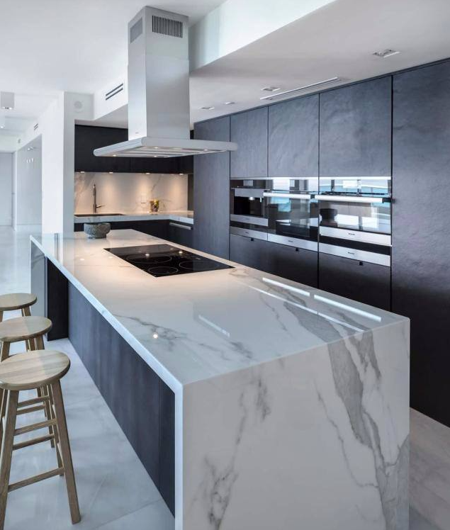 而較為嬌氣的大理石在高溫環(huán)境下時間一長,則容易變色,需小心呵護(hù),或定期打磨拋光保養(yǎng)。選擇大理石或巖板,就得視乎個人生活習(xí)慣了。