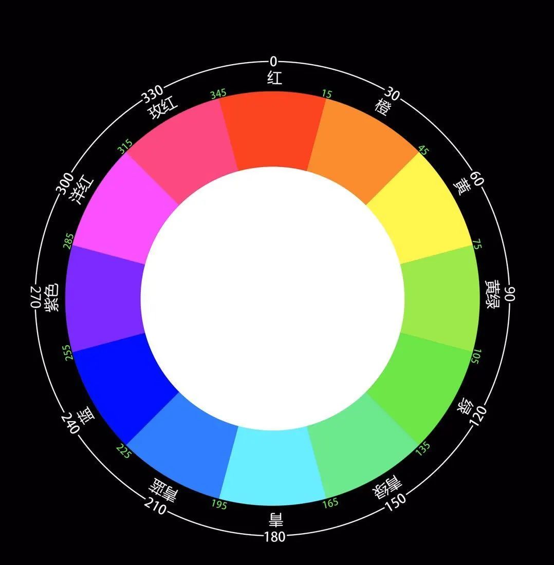 除了黑、白、灰三種無(wú)彩色,任何色彩都有色相。設(shè)計(jì)常用到的色相環(huán)就是最直觀的表達(dá)。