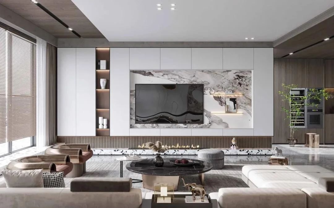 通常指天花、地板、墻面的顏色。定制的到頂柜體也充當(dāng)著背景色的角色。即使同一組家具,搭配不同的背景色,都會(huì)呈現(xiàn)不一樣的家居氛圍。